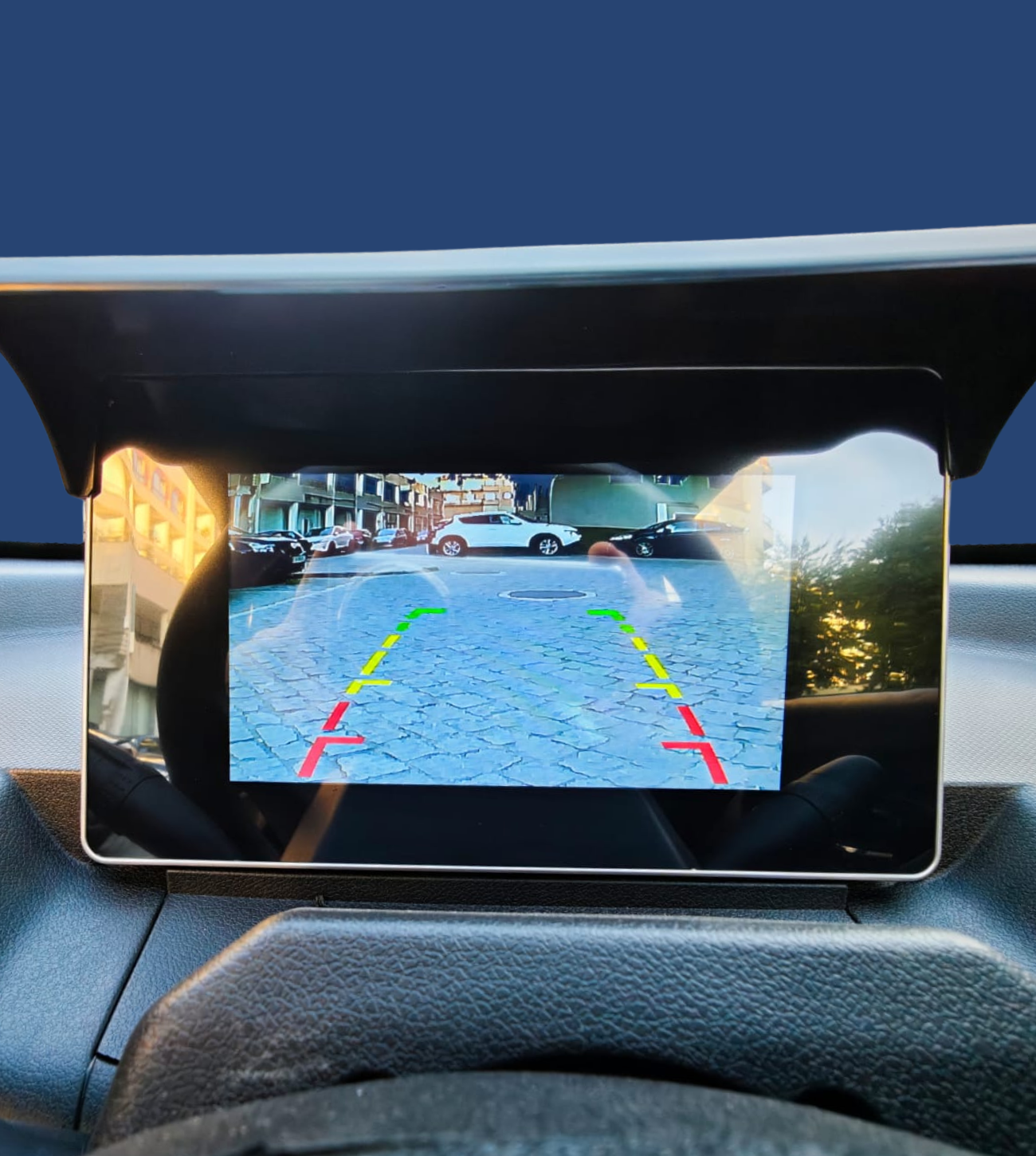 Estacione com segurança e rapidez, a câmara de visão traseira activa-se sozinha quando a marcha-atrás é engatada e dá-te uma visão direta da zona atrás do veículo, graças ao seu amplo ângulo de visão de 120°.